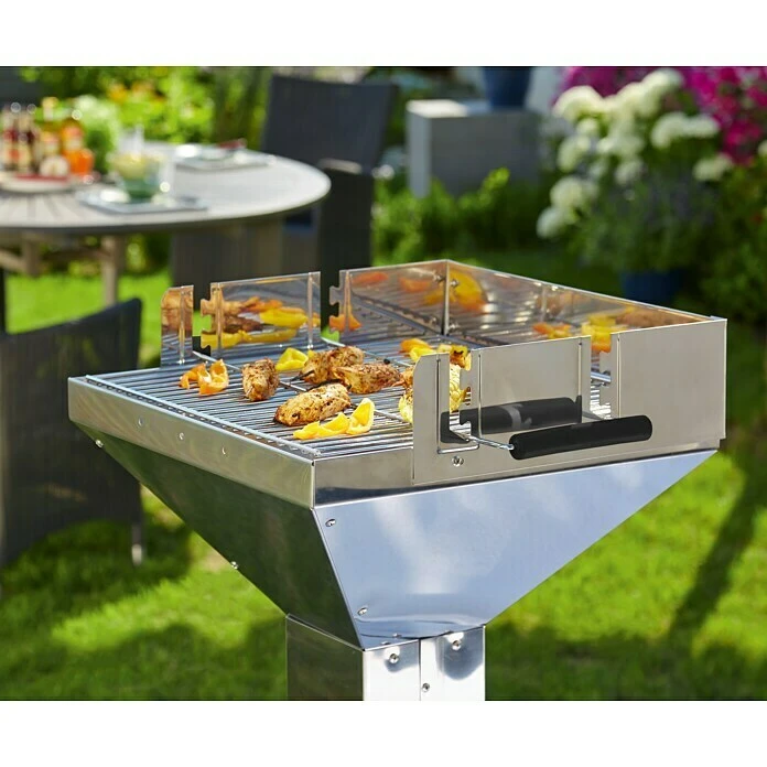 Der Trichtergrill Colorado von Grillstar ist mit Edelstahl beschichtet. Er verfügt über ein praktisches Kaminzug-System und zusätzlich über einen integrierten Aschebehälter für Kohleabfälle. Sein Standbein innen ist hohl und zieht durch die untere Lüftungsklappe die Luft zu den Kohlen in der Feuerschale. Dieser Grill ist platzsparend, bietet dennoch eine große Grillfläche und eignet sich damit hervorragend für Familien-Grillvergnügen.