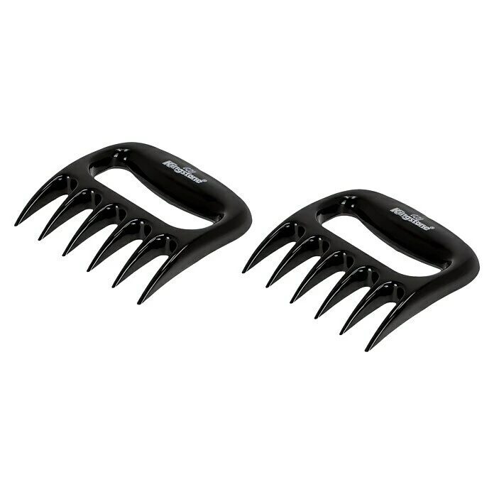 Die Fleischkrallen von Kingstone ermöglichen professionelles Zubereiten von Pulled Pork. Das Fleisch kann mit ihrer Hilfe schnell, sauber und ohne Verbrennungen in kleine Stücke gezupft werden, wobei die 6 scharfen Krallen pro Tatze die Arbeit erleichtern und die ergonomische Form die Handhabung verbessert. Neben der Herstellung von Pulled Pork können die Krallen aber auch zum Mischen von Salaten, Halten oder Heben von Fleisch, Brot und anderem genutzt werden.
