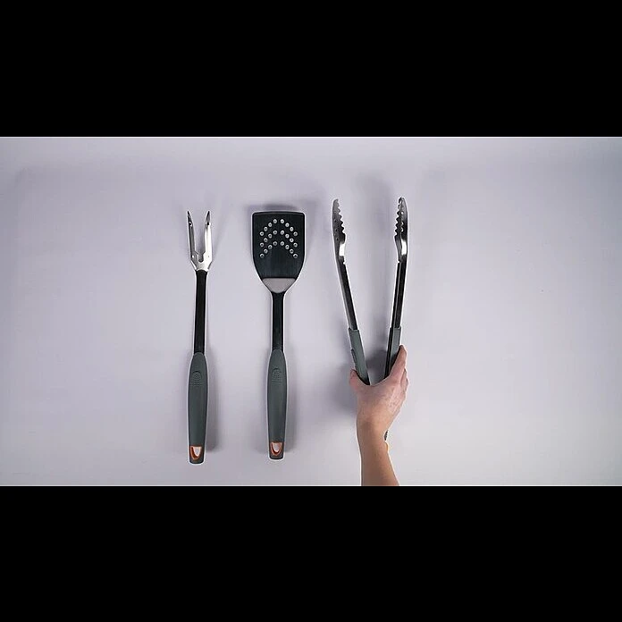 Das 3-teilige Grillzubehör-Set von Kingstone beinhaltet einen Grillgutwender, eine Grillzange und eine Fleischgabel. Schnelles und einfaches Wenden Ihres Grillguts wird dank des hochwertigen Grillzubehörs von Kingstone garantiert. Denn die Soft-Griffe von Zange, Gabel und Wender sorgen für besten Grip und schützen ideal vor Hitze. So wird Ihr Grillerlebnis noch besser!