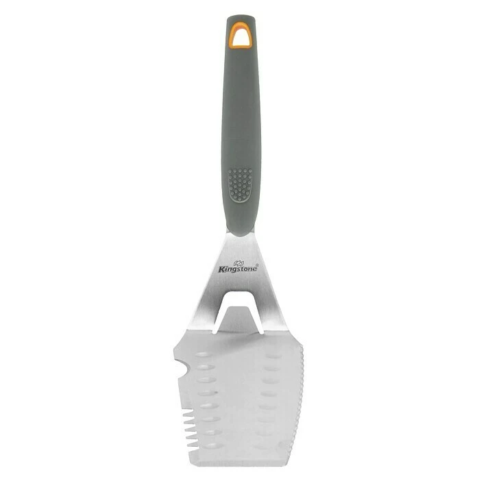 Der Kingstone Grillwender aus robustem Edelstahl sorgt für ein schnelles und einfaches Wenden von Grillgut. Sein ergonomischer Griff sorgt für eine optimale Handhabung. Dank seiner Größe bietet der Grillwender eine optimalen Abstand zur Hitze und schließt somit Verbrennungen aus.