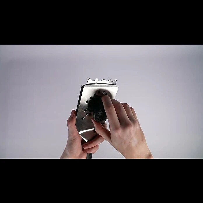 Das Kingstone 3 in 1 Multitool vereint Bratenheber, Grillbürste und Grillrostschaber in einem handlichen Werkzeug. Der Schaber kann einfach und schnell auf den Wender aufgesetzt werden, sodass dieser als Grillrostschaber fungiert und ein einfaches Reinigen des Rostes ermöglicht. Dank des ergonomischen Griffs liegt der Schaber sehr gut in der Hand und kann mit der Aufhängeöse auch leicht verstaut werden.