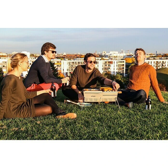 Mit dem Knister Holzkohlegrill Premium sind Sie ideal gerüstet für den nächsten Ausflug oder das nächste Grillen auf dem Balkon. Durch seine kompakte Größe ist er schnell verstaut und findet Platz in der kleinsten Lücke. Er ist komplett aus hochwertigem Edelstahl gefertigt, sodass er spülmaschinenfest und witterungsbeständig ist. Auf den 2,5 mm starken Edelstahlrosten lässt sich problemlos jeder Grillwunsch erfüllen. Und sollten es doch einmal mehr Personen sein, die Grillen möchten, lässt sich der Grill einfach auf die doppelte Größe ausziehen. Die umklappbaren Standbeine lassen sich bei Nichtgebrauch des Grills auch als Tragegriff nutzen, sodass sich der Grill wie ein Korb tragen lässt. Auch die Grillutensilien können so vor und nach dem Grillen direkt im Grill transportiert werden.