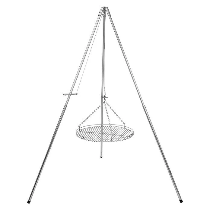Dieser Schwenkgrill zeichnet sich besonders durch seine hohe Funktionalität aus. Dank der teleskopierbaren Standrohre und dem Einrastsystem lässt sich der Grill einfach zusammenlegen und schnell wieder aufbauen. Mit dem praktischen Schieber kann der Grillrost individuell in der Höhe verstellt werden. Die Seilwirbel sorgen dabei für eine langanhaltende Drehung des Grillrostes, ohne dass sich dabei die Ketten verheddern. Der Grill wird mit Holzkohle betreiben, Feuerschalen sind nicht im Lieferumfang enthalten.
