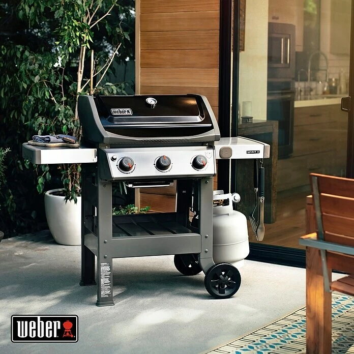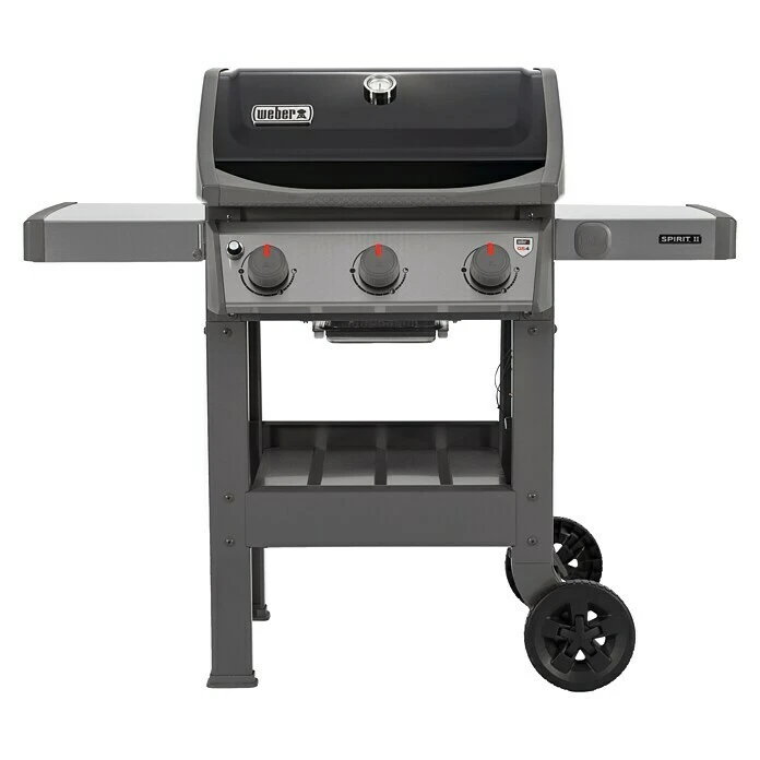 Der Weber Gasgrill Spirit II E-310 GBS ist mit dem exklusiven Hochleistungsgrillsystem GS 4 ausgestattet. Die vier Hauptkomponenten – Infinity-Zündung, Hochleistungsbrenner, Aromaschienen und Fettauffangsystem – bieten großes Grillvergnügen bei äußerst komfortabler Anwendung. Durch die zugespitzte Form der Brenner wird das Grillgut überall auf dem Rost gleichmäßig gegrillt, sodass hervorragende Grillergebnisse erreicht und viele verschiedene Fleischarten optimal zubereitet werden. Die beim Grillen entstehenden Fleischsäfte werden in diesem Gasgrill auf Aromaschienen gesammelt, verdampfen dort und verleihen dem Grillgut so ein unwiderstehliches Raucharoma. Der porzellanemaillierte Grillrost bietet eine extra große Grillfläche, womit sich schnell und einfach Grillgut zubereiten lässt. Der emaillierte Deckel ist besonders korrosions- und hitzebeständig sowie leicht zu reinigen. Die seitlichen Ablagen bieten zusätzliche Arbeitsfläche und dank des abklappbaren linken Tisches kann der Weber Gasgrill Spirit II E-310 platzsparend verstaut werden.