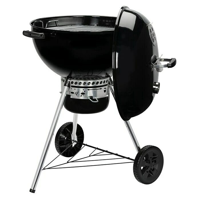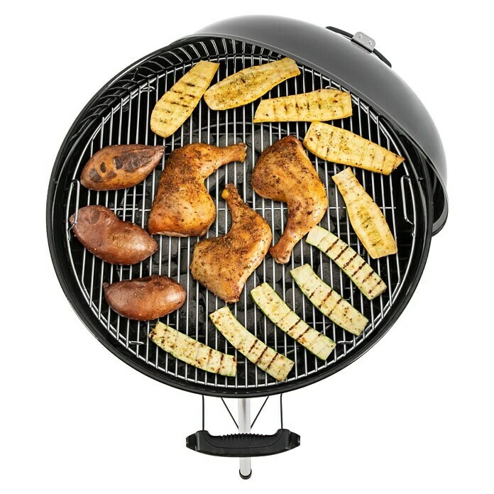 Der klassische Holzkohle- und Kugelgrill Original Kettle E-5730 von Weber bietet das optimale Grillerlebnis! Er hat eine angenehme Größe, die genug Platz für das Grillgut der ganzen Familie bietet und sich als besonders pflegeleicht erweist. Durch das patentierte Weber One-Touch-Reinigungssystem aus Edelstahl funktioniert die Reinigung im Handumdrehen und auch die Asche lässt sich ganz einfach dank des Aschebehälters entsorgen. Das Grillerlebnis selbst wird durch ein im Deckel integriertes Thermometer vereinfacht und der Grill ist dank der Rollen auch mobil und lässt sich an jedem gewünschten Ort einsetzen. Der Deckel des Grills ist mit einem stabilen Griff mit Hitzeschutz ausgestattet, wodurch er auch während des Grillens problemlos geöffnet werden kann.